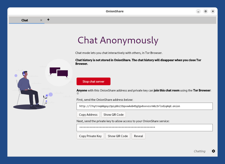 • You start a chat room from OnionShare.