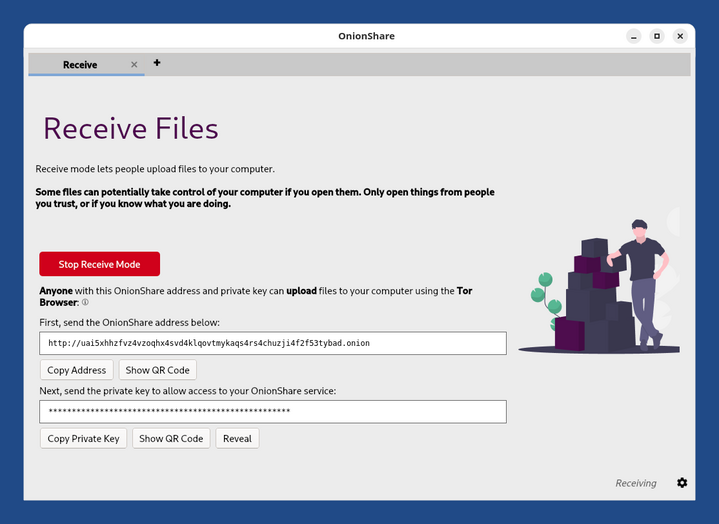 Mit dem Empfangsdienst von OnionShare: