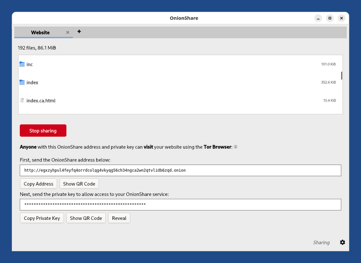 Diese Dienste werden sofort nicht mehr verfügbar, sobald Sie OnionShare schließen oder Tails herunterfahren.