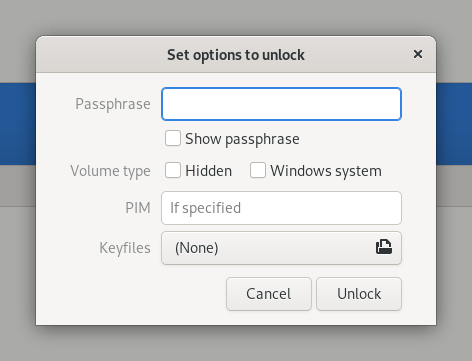 To unlock a VeraCrypt volume, you might need the following parameters, depending on the options that were selected when the volume was created: