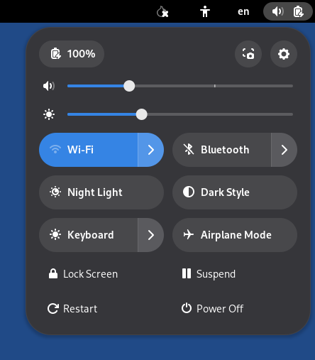 button to take a screenshot or start recording a screencast.Screenshots are saved in the Pictures folder, accessible from the Files browser.